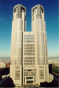 Soweit ich weiß, ist nicht explizit ein Film gedreht worden, der dieses Gebäude preist. Interessant ist aber, dass das Rathaus von Tokyo auch als „Baburu no To“ bezeichnet wird, was sowohl „Turm von Babel“ als auch „Bubble-Turm“ heißen kann. Erbaut wurde es für 157 Milliarden Yen mitten in der Zeit der Bubble Economy, daher auch der zweite Name als Anspielung auf die Gier und den Größenwahn der achtziger Jahre.