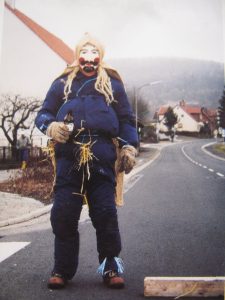 Oh ja, kommen wir zu verkleideten Menschen zurück. An der Rhön, im Herzen Deutschlands gibt es einen erschreckenden Karnevalsritus: junge Männer verkleiden sich als „wilder Jud“ und werden dann von der restlichen Dorfbevölkerung verdroschen und aus dem Dorf gejagt! Es handelt sich um einen genuin antisemitischen Brauch, der seit dem Mittelalter in dieser Form begangen wird. Der Blaumann ist neu, aber die ältesten Masken, die sie in diesen Dörfern gefunden haben, sind tatsächlich 450 Jahre alt! (Ich hab das mal zufällig in einem Buch über Karnevalsmasken entdeckt. Den Buchtitel weiß ich leider nicht mehr, aber es steht im Präsenzbestand der Bibliothek des Kunstmuseum Bern – ganz hinten rechts!) Das, was Sacha Baron Cohen im fernen Kasachstan ansiedelt, findet also alljährlich mitten in Deutschland statt! Krass, oder? Dieses Foto bestätigte eine lang gehegte Vermutung: in der Schule habe ich immerhin gelernt, dass der Antisemitismus keine Erfindung der Nazis war, sondern schon im Deutschland des frühen 19 Jahrhundert grassierte. Das er aber eine uralte, dem deutschen Sein schon so lange anhaftende Gemeinheit ist, stand mir nun unwiderlegbar vor Augen. Was man so lange geübt hat, verlernt man nicht in 70 Jahren!