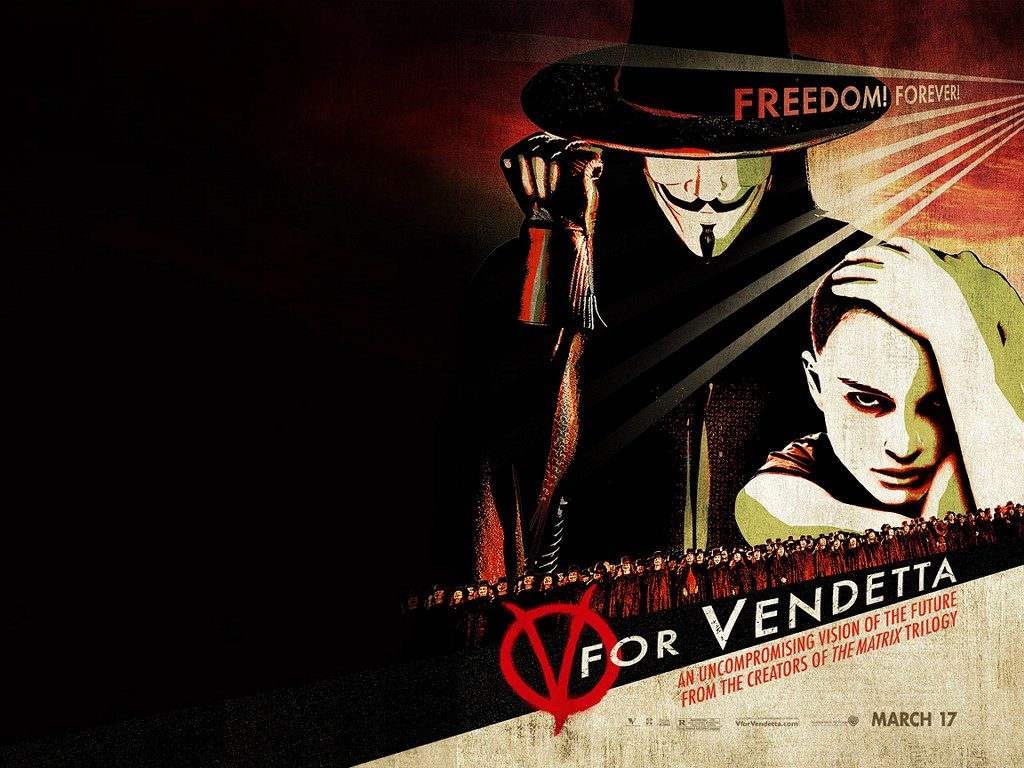 Ein Domino Effekt: 1605 wird das Gunpowder Plot Attentat auf das House of Lords und King James I. vereitelt. Einer der Attentäter, der katholische Offizier Guy Fawkes wird verhaftet, er bleibt bei der Folter standhaft und springt bei seiner Hinrichtung vom Schaffott in den Tod. Noch im gleichen Jahr wird die Bonfire Night als Gedenktag eingeführt und seitdem im gesamten Kingdom als antikatholischer Feiertag mit Umzügen und der rituellen Verbrennung von Guy-Fawkes-Puppen begangen. 1982 erfinden der britische Comic Autor Allan Moore und sein Zeichner David Lloyd eine Guy Fawkes Maske als Konterfei für ihren gesichtslosen Revolutionär V. 2005 wird ihre Graphic Novel V for Vendetta von James McTeigue dann verfilmt, das Drehbuch stammt von den Wachowski Geschwistern und Natalie Portman spielt die weibliche Hauptrolle.